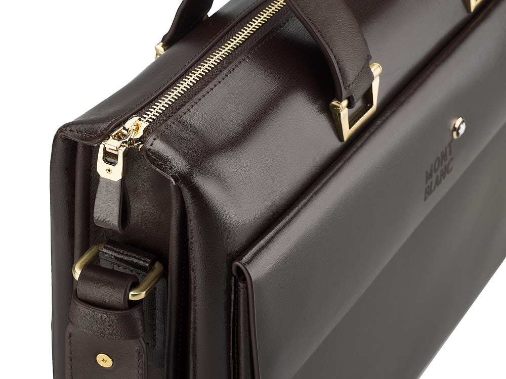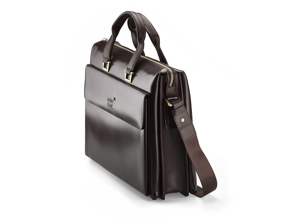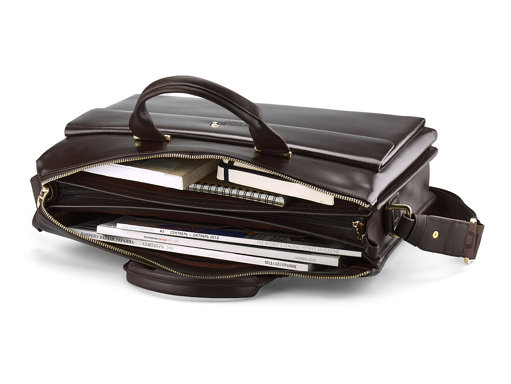 Портфель – сумка из полированной кожи высшего сорта Мont Blanc 8182-3 Brown коричневый