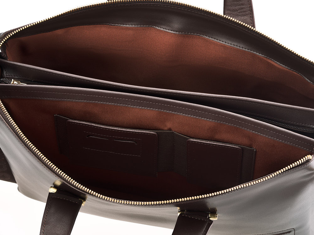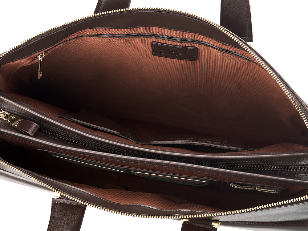 Модель имеет два основных отделения и отделение на молнии для особо ценных документов или ноутбука. Снаружи карман для удобства пользования.