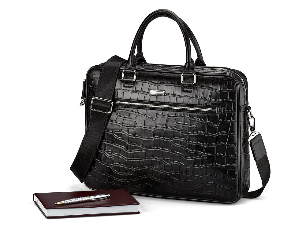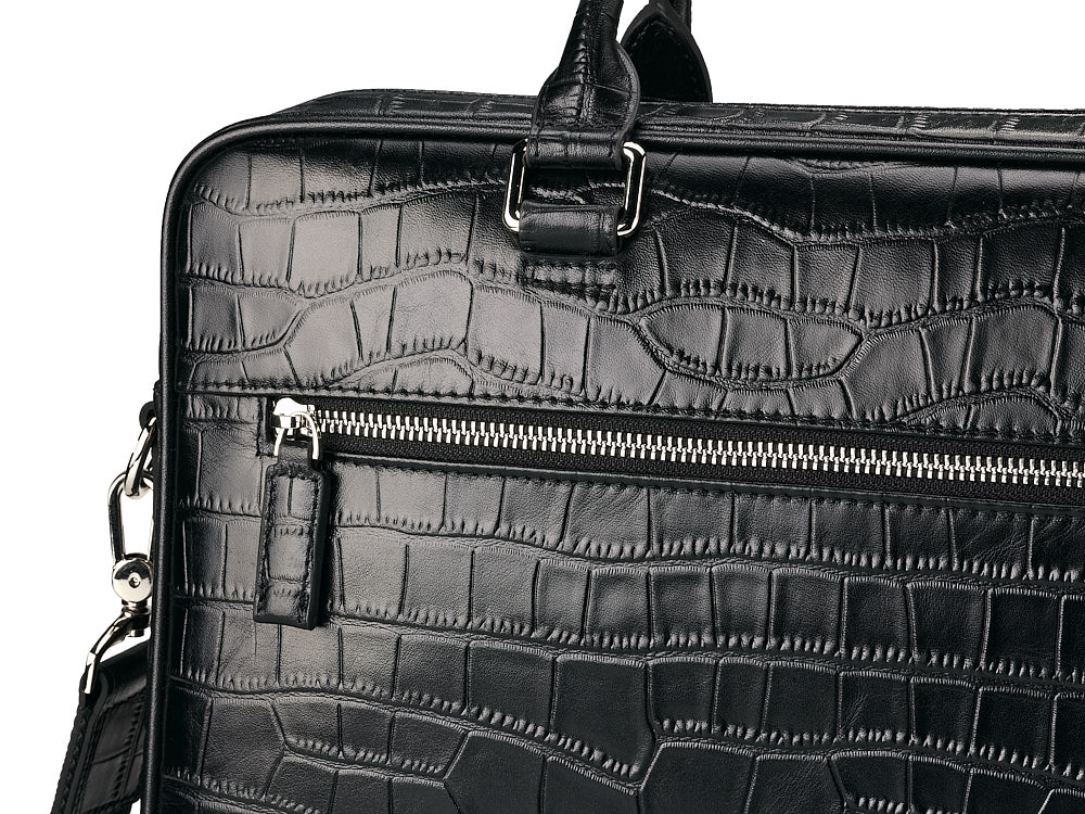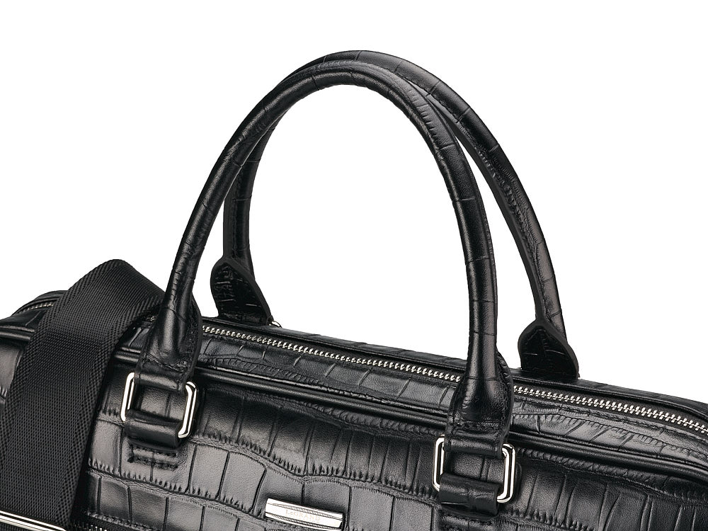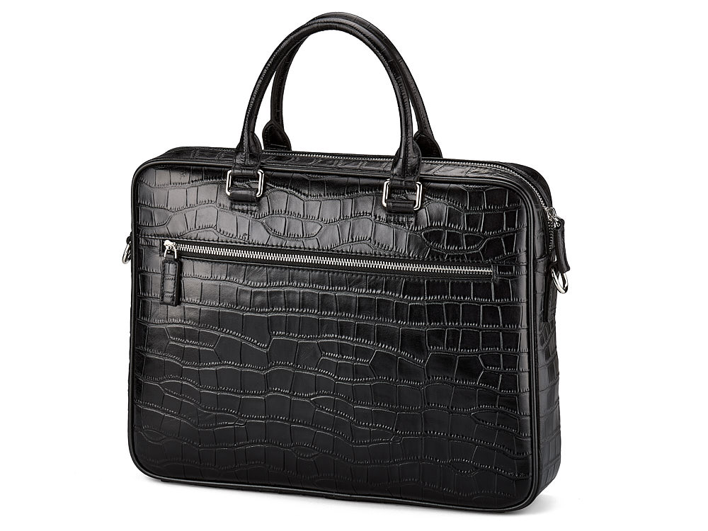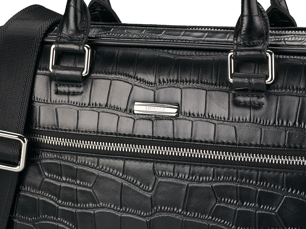 Эта сумка создана для тех, кто ценит изысканный дизайн и функциональность. Изготовленная из натуральной кожи высшего сорта с тиснением под крокодила, она обеспечивает долговечность и приятные тактильные ощущения. Сумка имеет одно основное отделение для бумаг, карман для ноутбука и дополнительные отделения на молнии, что позволяет удобно организовать ваши вещи. Компактные размеры позволяют легко разместить сумку в руке или на плече, сохраняя ваш стиль в любой ситуации.