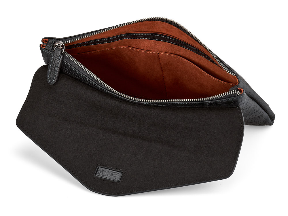 Клатч удивляет своей функциональностью: одно просторное отделение на молнии хранит ваши важные вещи с абсолютной надежностью. Внутри предусмотрены карманы для удобного размещения мелочей, а сзади размещена изящная петля, которая позволяет удобно носить клатч на руке, обеспечивая максимальный комфорт.