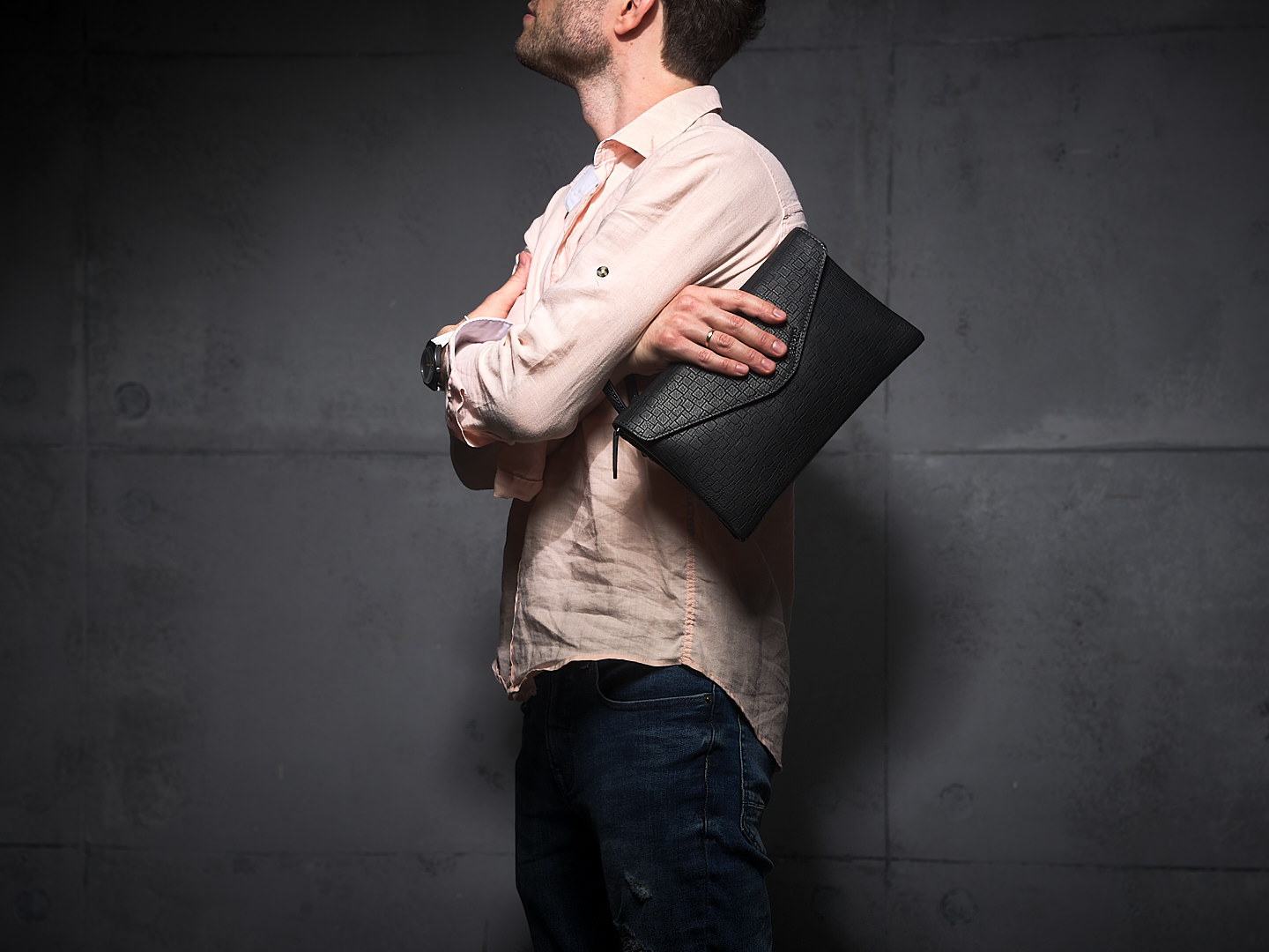Позвольте представить вашему вниманию наш элегантный мужской клатч-конверт, который станет настоящим произведением искусства в вашем гардеробе. Изготовленный из исключительной кожи высшего сорта и украшенный оригинальным рисунком, этот клатч не только восхищает своим видом, но и надежно защищён от царапин, сохраняя первозданную красоту.