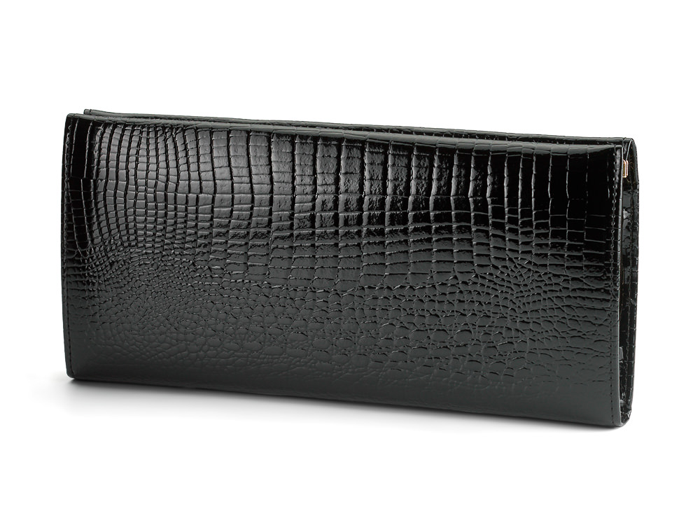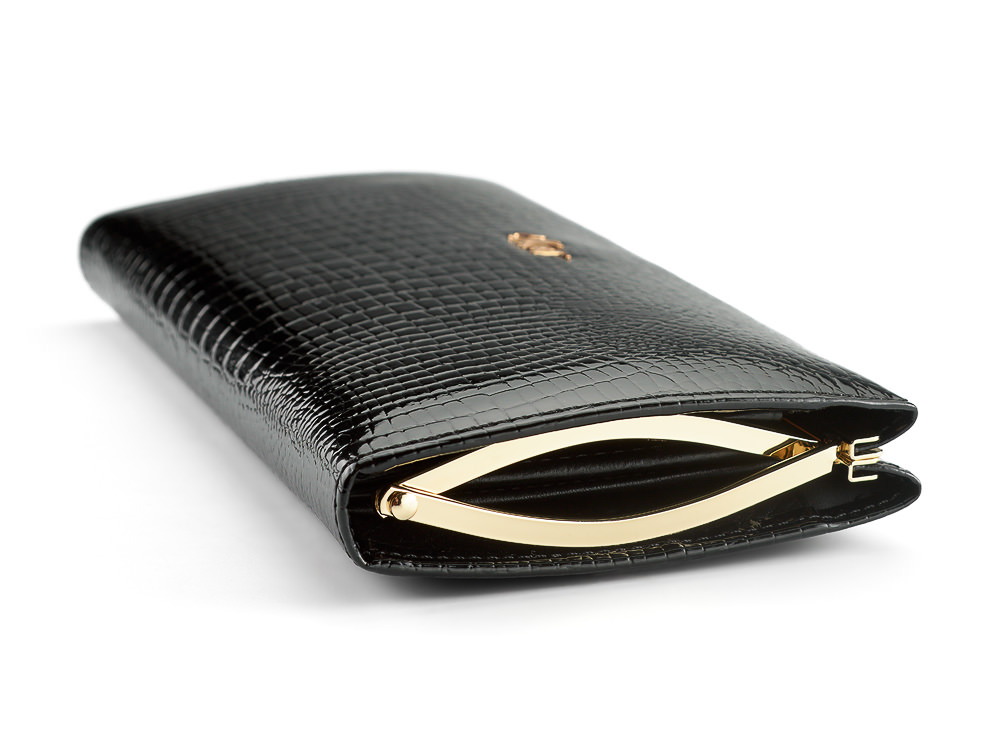 Этот женский кошелёк выполнен из натуральной кожи высшего сорта с лаковым покрытием. Благодаря этому он долго сохраняет красивый внешний вид, устойчив к царапинам и ежедневному использованию. Изысканная форма кошелька выглядит элегантно и легко дополняет как деловой, так и повседневный образ.