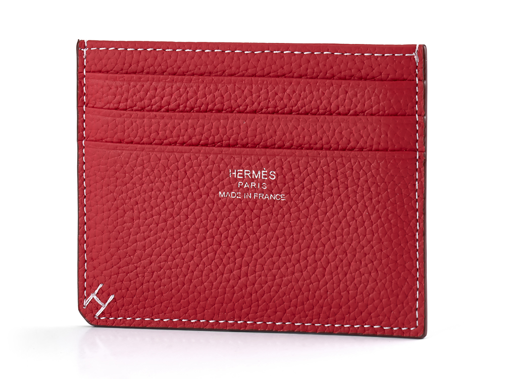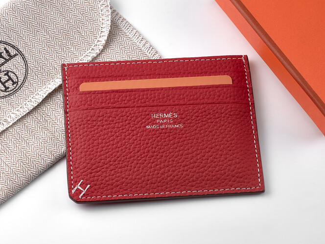 Картхолдер из натуральной кожи Hermes 219 Red красный