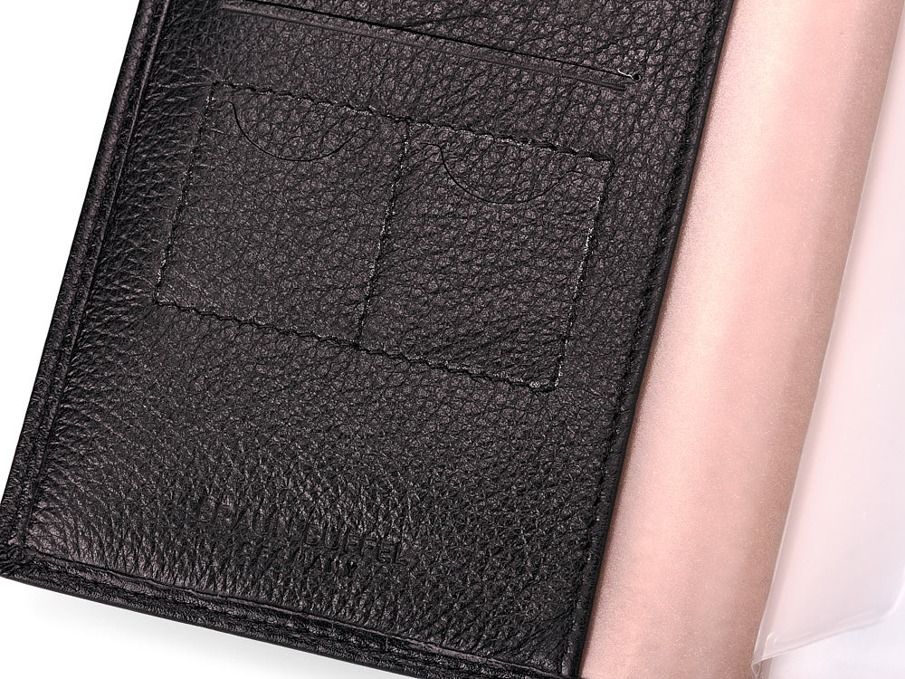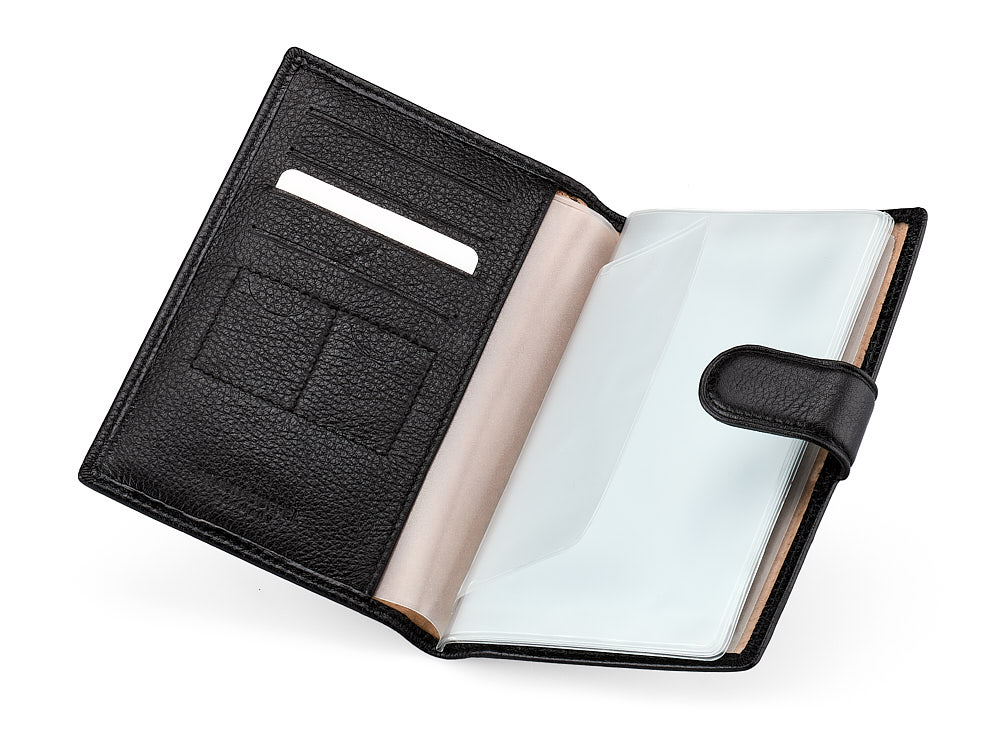 Компактные размеры (9,5х13,5х1,5 см) позволяют легко разместить обложку в кармане или сумке. Внутреннее оформление включает многочисленные вкладыши для документов, отделения для пластиковых и визитных карт, а также два отделения для SIM-карт, обеспечивая удобный доступ ко всем необходимым вещам. Застежка на кнопку гарантирует надежное закрытие и сохранность содержимого.