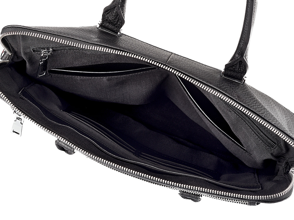 Модель имеет одно основное отделение для бумаг, карман для ноутбука и отделение на молнии. А также два наружных кармана для удобства пользования.