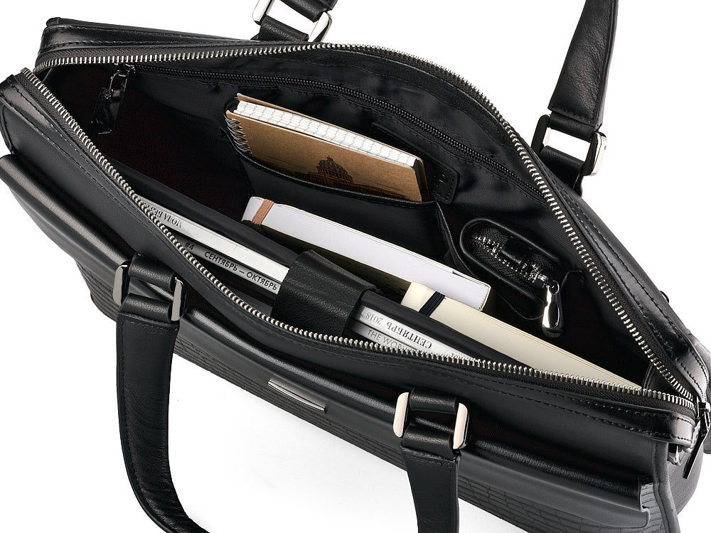 Сумка оснащена двумя удобными ручками и плечевым ремнем, что обеспечивает комфортное ношение в любой ситуации. Внутри расположено одно большое отделение с уплотнителем для ноутбука, что гарантирует надежную защиту вашего устройства. Дополнительные карманы позволяют удобно организовать необходимые мелочи.