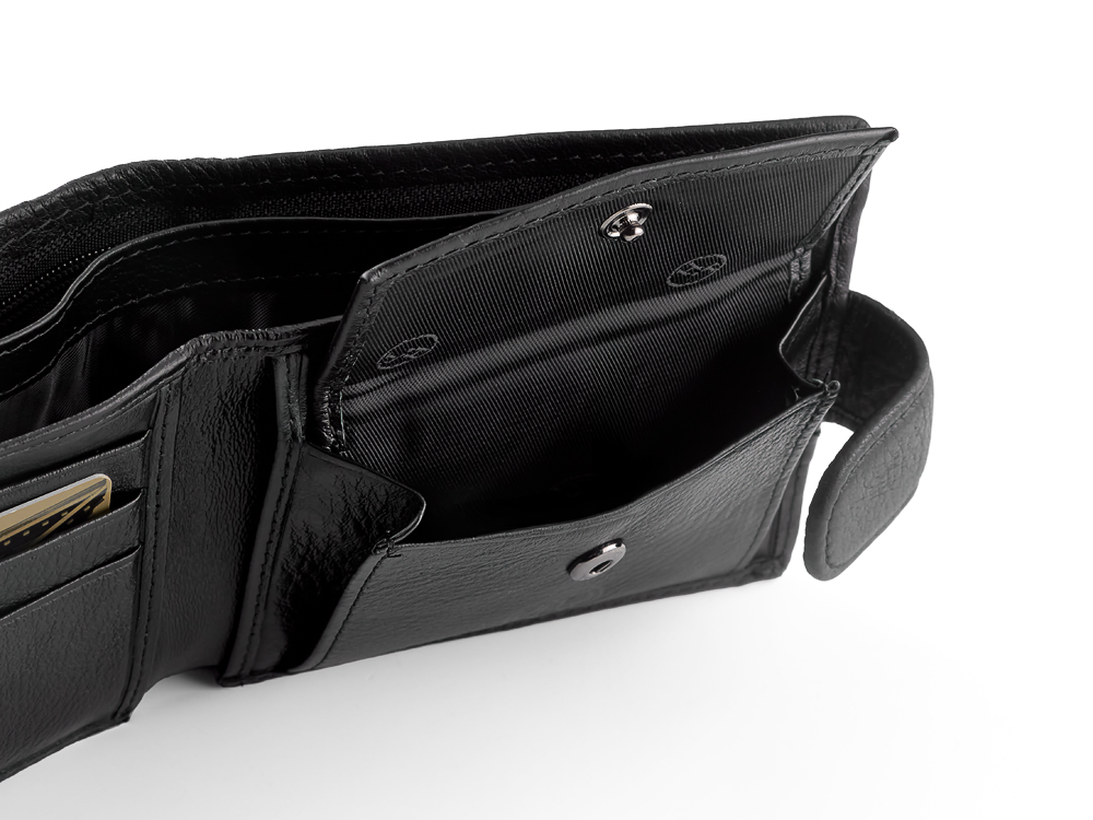 Откройте для себя гармонию комфорта и стиля с этим горизонтальным мужским кошельком из натуральной зернистой кожи, где функциональный дизайн встречается с ежедневным удобством. Мягкая текстура кожи обеспечивает приятные ощущения, а надежная фурнитура гарантирует длительную службу. Застежка на кнопке добавляет удобства, а компактный размер позволяет легко носить его в кармане, делая идеальным для купюр, карт и монет в городе, на работе или в поездках. Классический вид подходит к любому гардеробу, внося нотку изысканности.