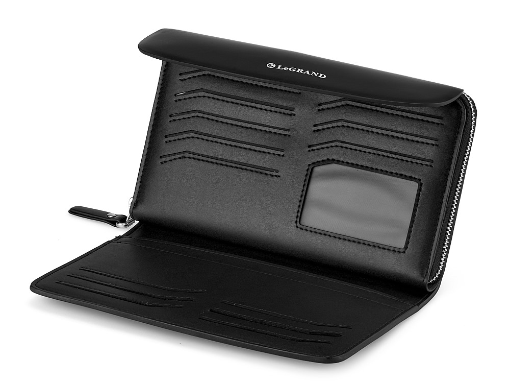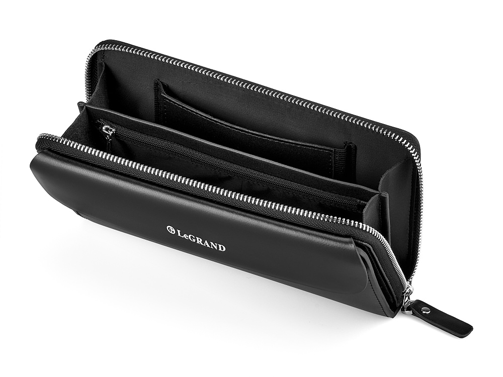 БрендLeGRAND collection Габариты22х13х2 см Доп. отделениядля кредитных карт, для монет МатериалНатуральная кожа Опциикарман для телефона Полмужской Тип застежкимолния, кнопка Тип носкибоковая ручка Основных отделений2 ЦветЧерный Тип и фактура кожигладкая
