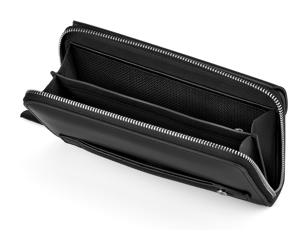 • Вместительный и удобный дизайн: Два основных отделения на молнии позволяют удобно разместить документы, карты и деньги.