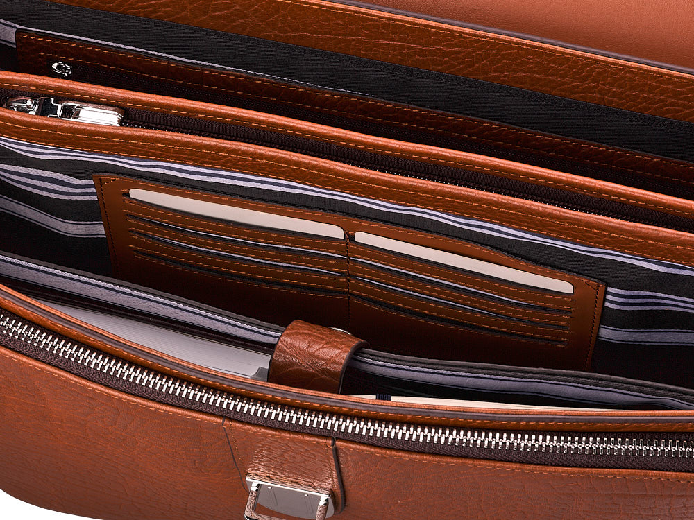 БрендМont Blanc Габариты42х32х12 см Доп. отделениядля кредитных карт, для ноутбука МатериалНатуральная кожа Опциикарманы Полмужской Размер по диагонали15,6" Тип застежкизамок-защёлка Тип носкиверхняя ручка/ручки, плечевой ремень ФорматA4 Видгоризонтальные Основных отделений3 ЦветРыжий Тип и фактура кожизернистая