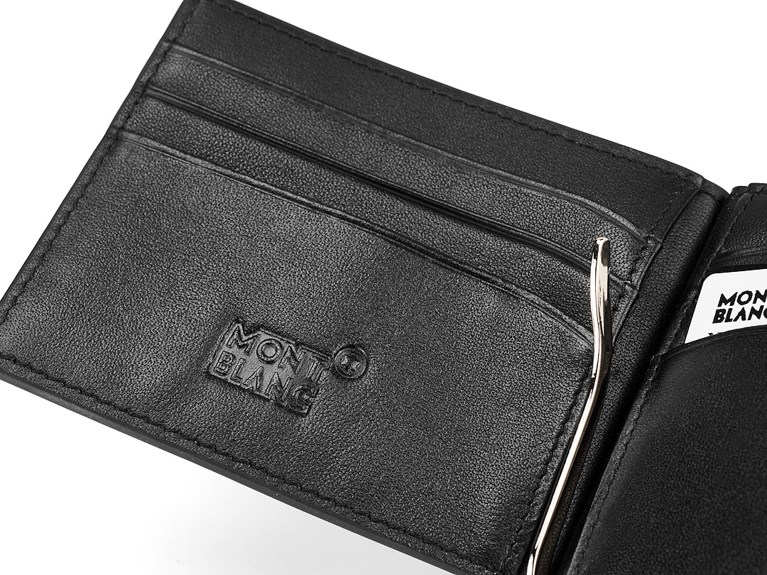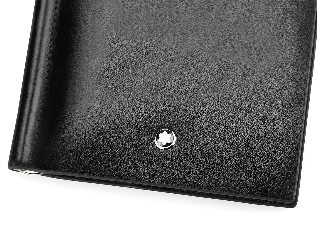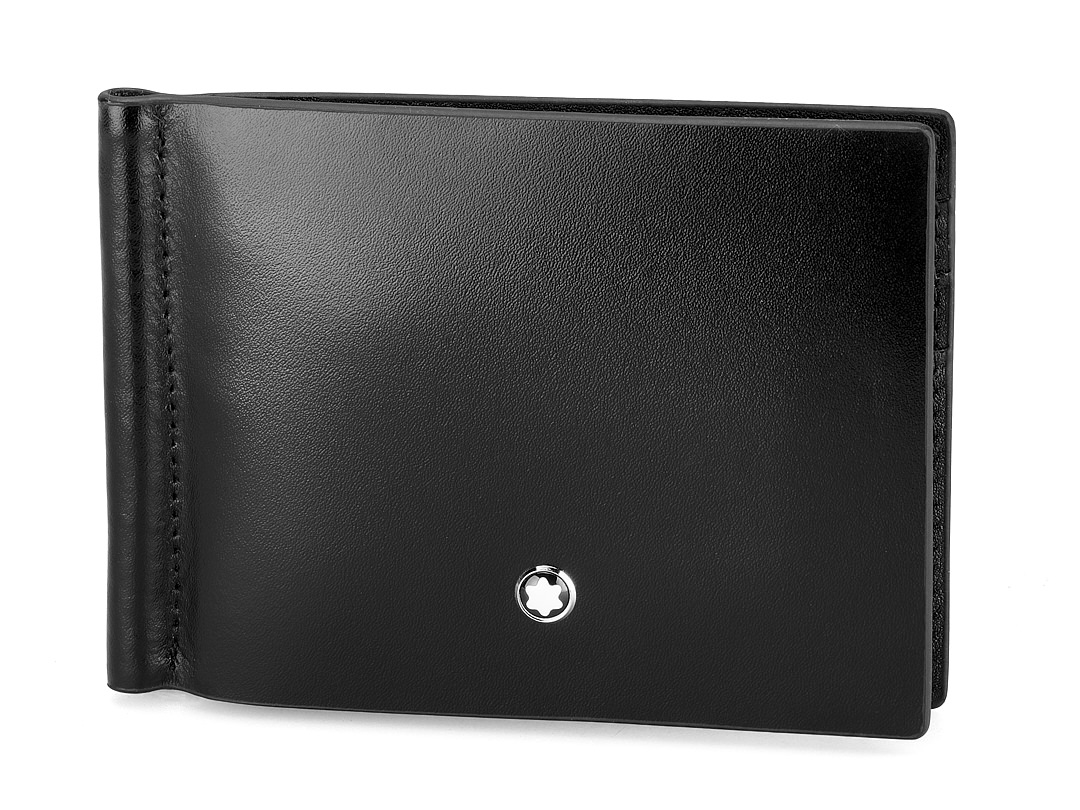 Кожаный мужской зажим для денег Мont Blanc 1130A чёрный