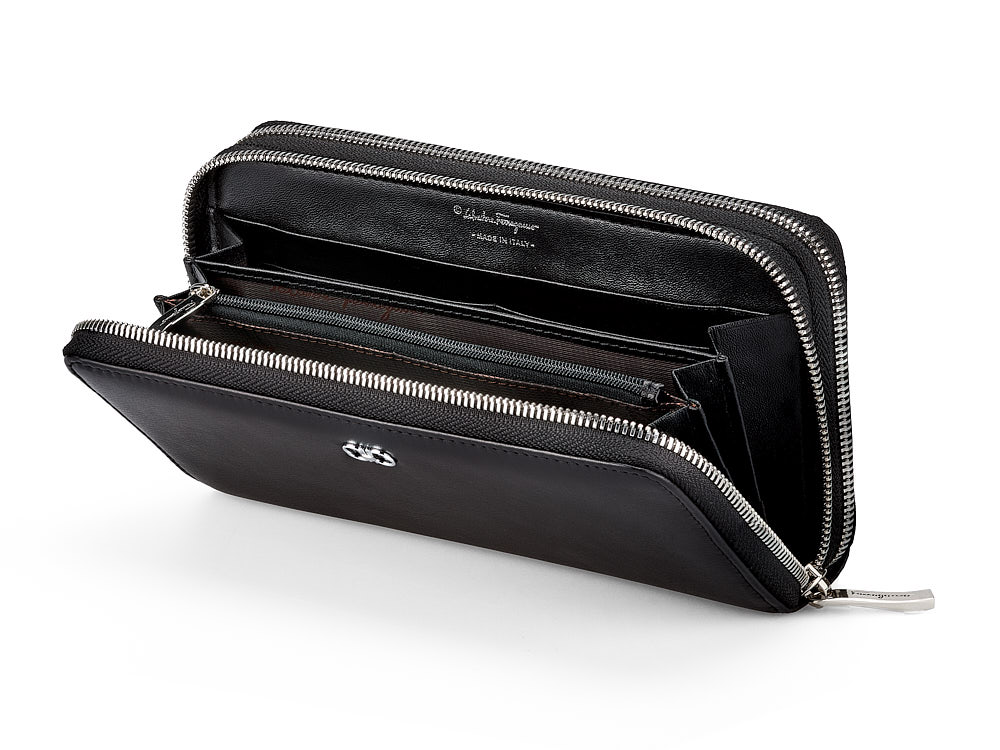 Кожаный женский кошелек - клатч Salvatore Ferragamo 8088 A Black чёрный