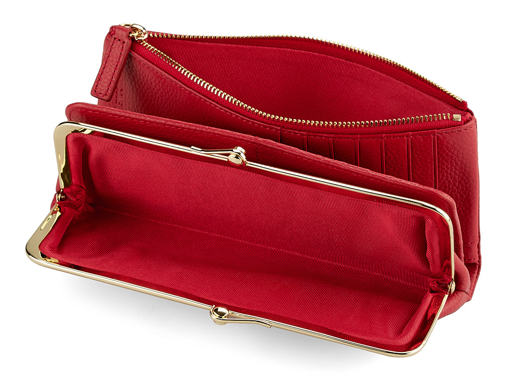 Его три основных отделения идеально подходят для хранения купюр, в то время как специальные кармашки для кредитных карт и оригинальная монетница на "поцелуйчике" обеспечивают удобный доступ к самому необходимому.