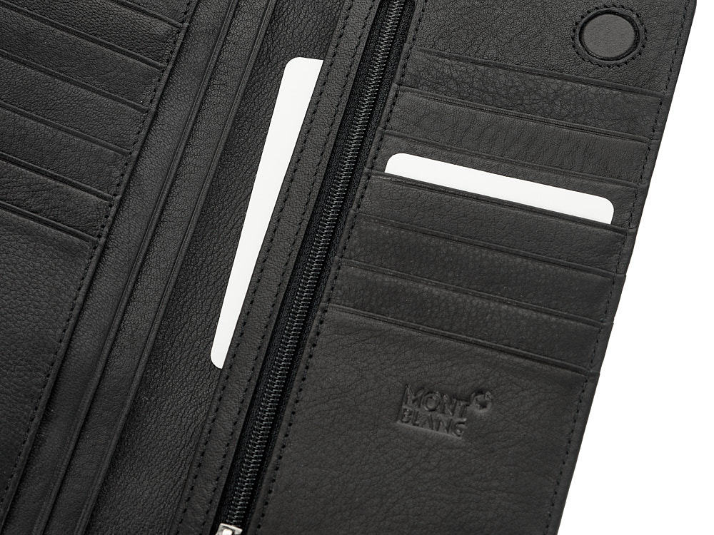 Портмоне оборудовано монетницей на молнии и картхолдером с отдельным отделением для документов. Несмотря на свою вместительность, оно остаётся тонким и легко помещается во внутренний карман пиджака или верхней одежды.