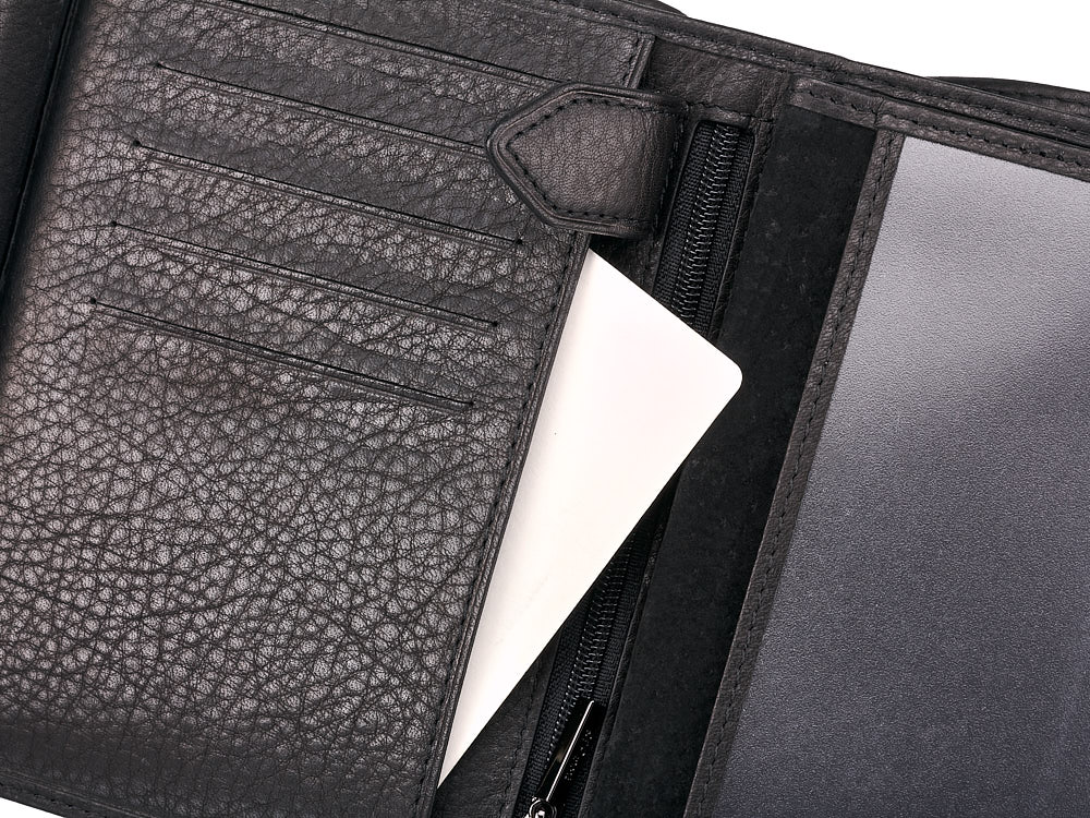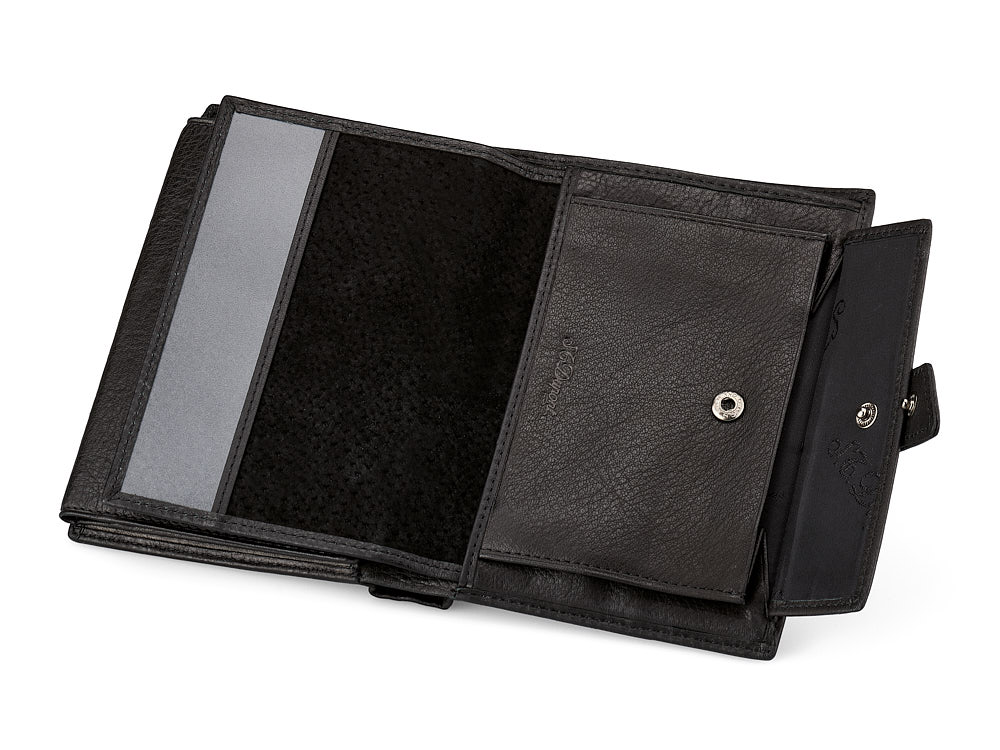 - Функциональность: три основных отделения для купюр, два дополнительных отделения, секции для кредитных карт и монет, а также съемный вкладыш обеспечивают оптимальную организацию.