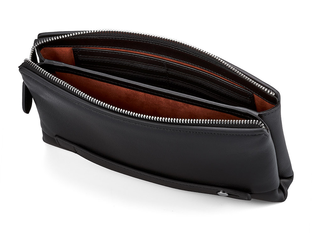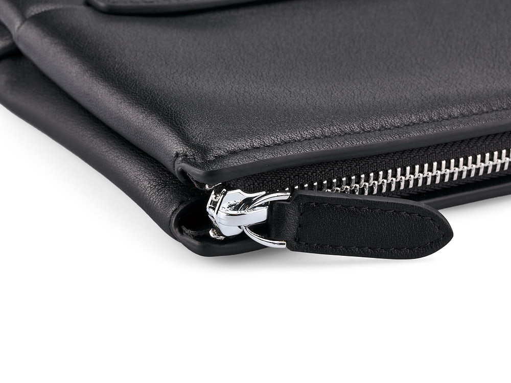 Этот клатч – это не просто аксессуар, а отражение вашей уверенности и статуса. Изготовленный из гладкой натуральной кожи высшего качества, он сочетает в себе стиль и практичность. Внутри клатча – два основных отделения и карман на молнии, что позволяет с легкостью разместить всё необходимое: от документов до карт и телефона. Удобная боковая ручка обеспечивает комфорт при ношении, делая этот клатч идеальным для динамичной жизни.