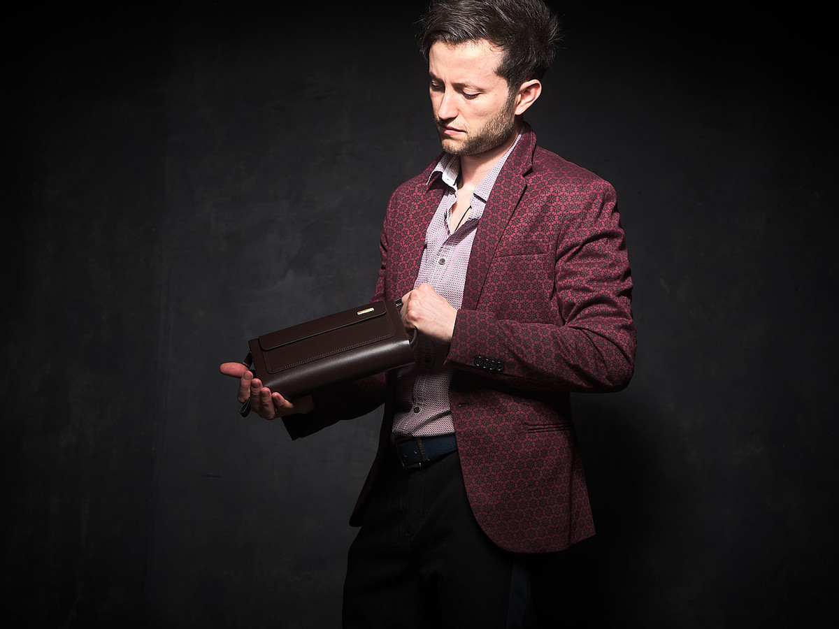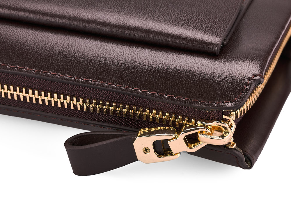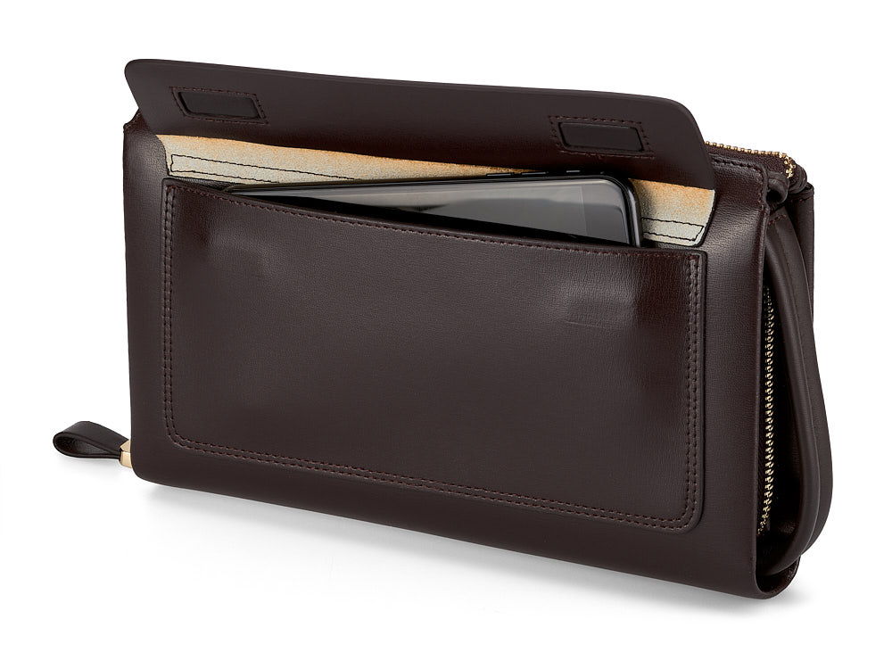 Стильный мужской клатч из натуральной кожи с накладным карманом под телефон и боковой ручкой. Современная модель, которая подойдет под классику и повседневный наряд.