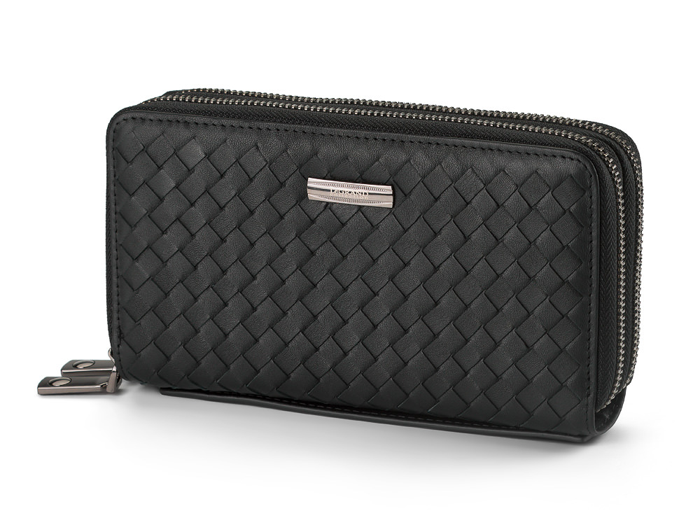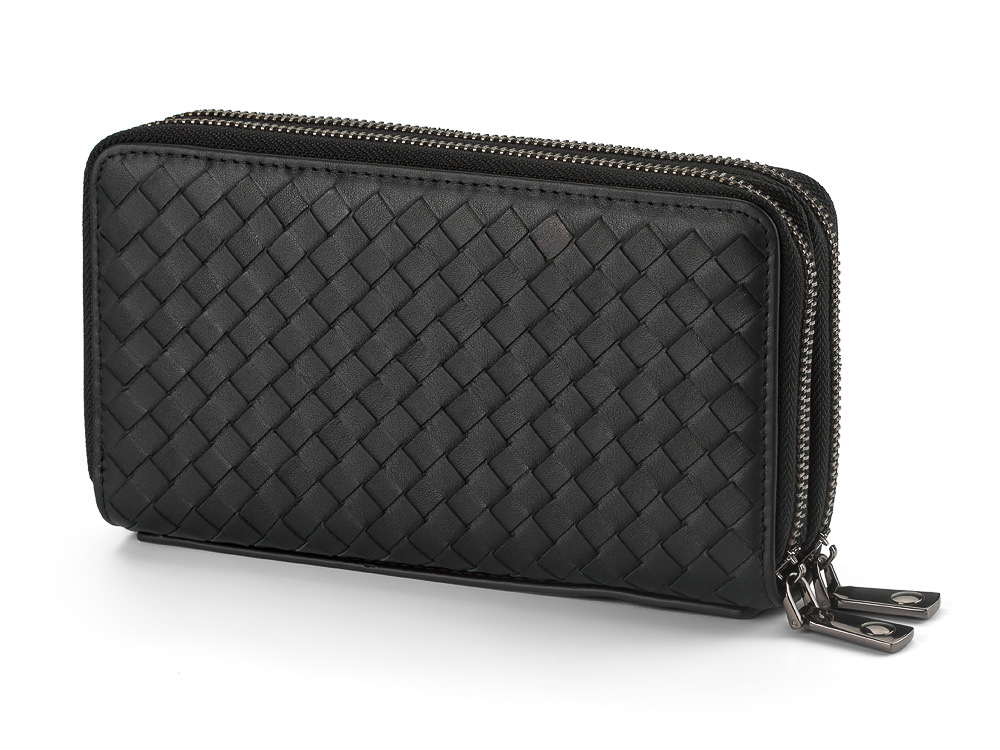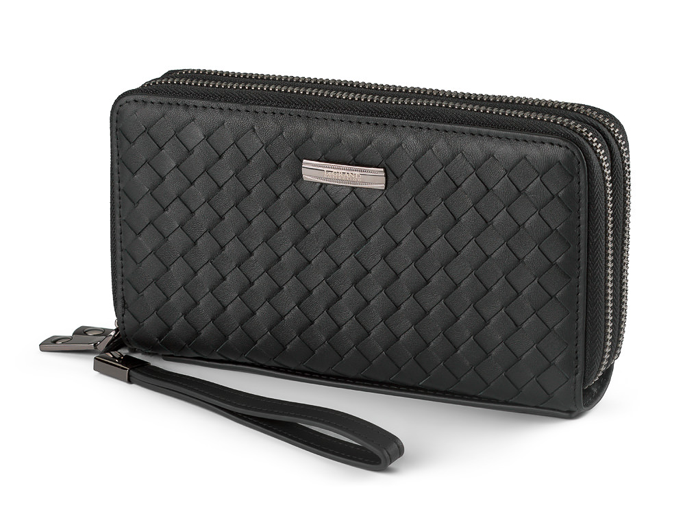 Мужской клатч – кошелек из натуральной плетеной кожи на две молнии LeGRAND collection 162-M31 чёрный