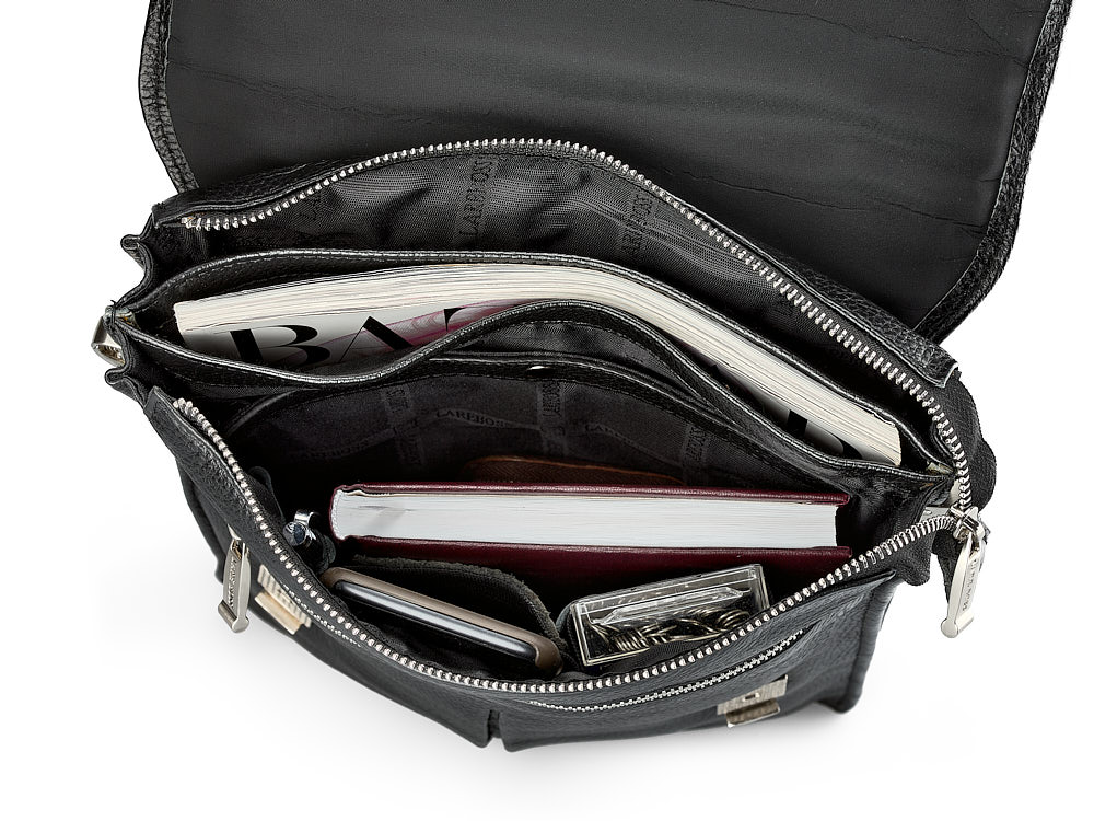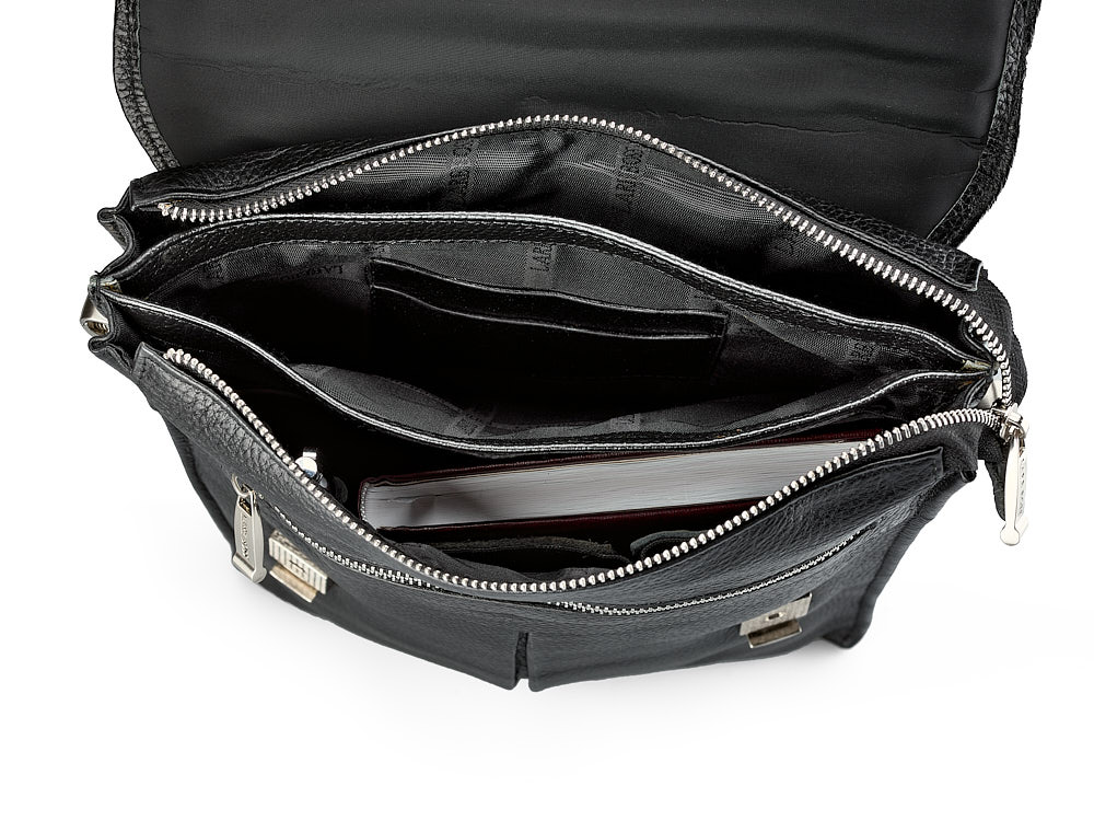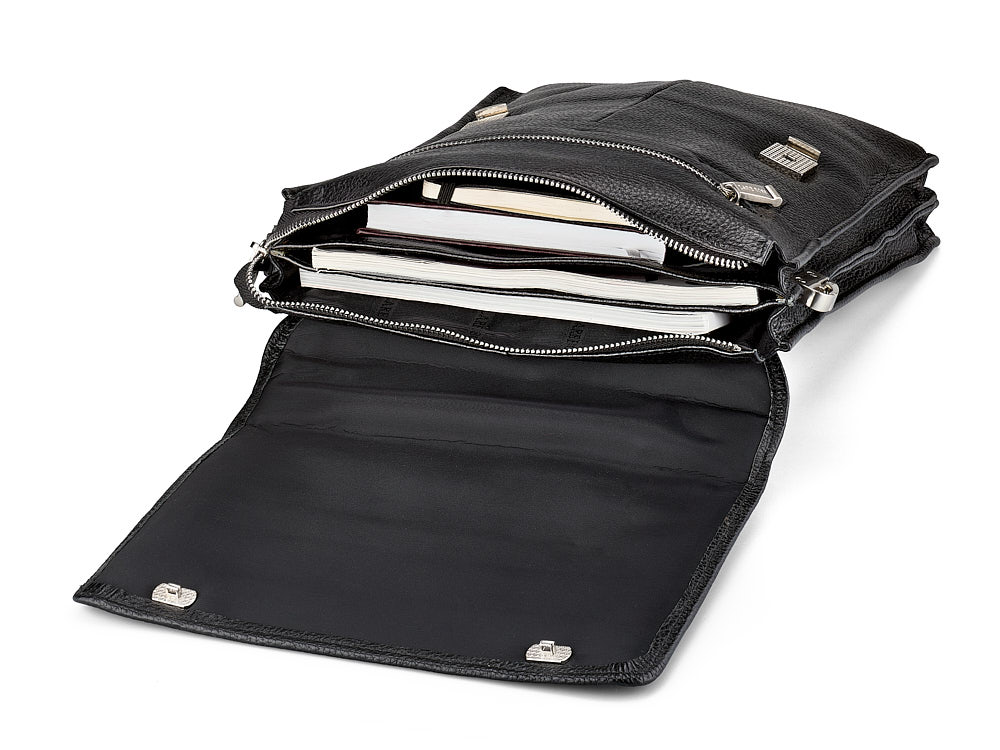 Весьма функциональный вертикальный портфель из натуральной кожи.