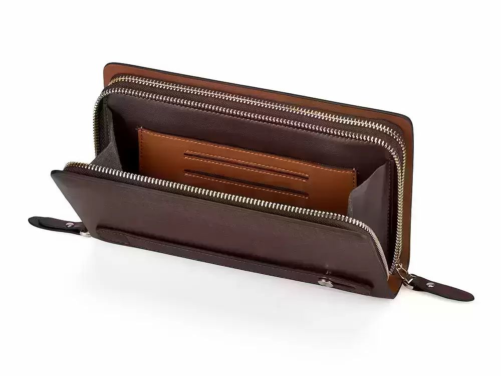 Этот клатч является идеальным выбором для тех, кто ценит сочетание элегантности и практичности. Изготовлен из высококачественной натуральной кожи, он обеспечивает долговечность и презентабельный внешний вид. Клатч оснащен двумя вместительными отделениями, одно из которых полностью открывается для удобства использования, а также дополнительными отделениями для купюр, кредитных карт и монет, что обеспечивает удобное хранение всех необходимых вещей. Сзади расположена ручка-фиксатор для удобного ношения. Благодаря компактным размерам, он отлично подходит для повседневного использования, деловых встреч или путешествий.