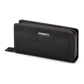 Мужской клатч – кошелек из натуральной плетеной кожи на две молнии LeGRAND collection 162-M31 чёрный