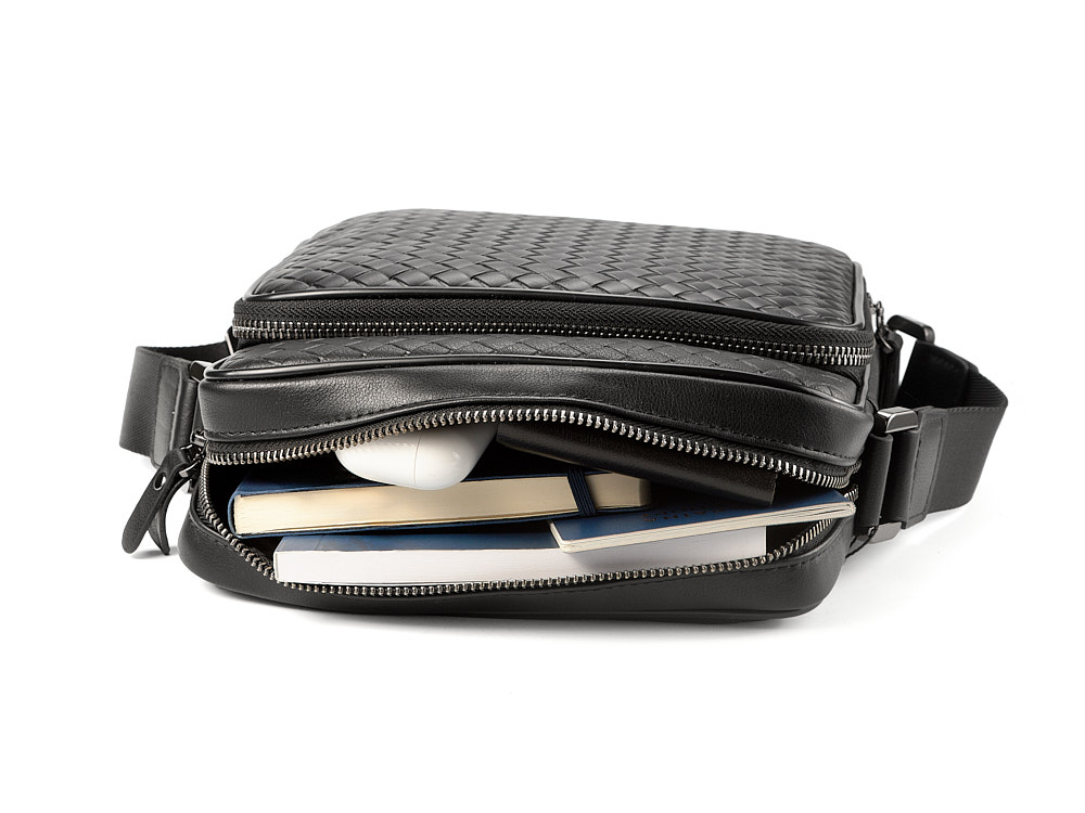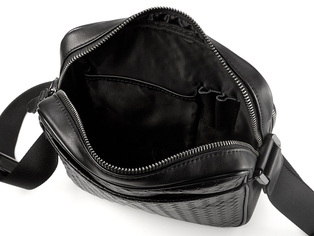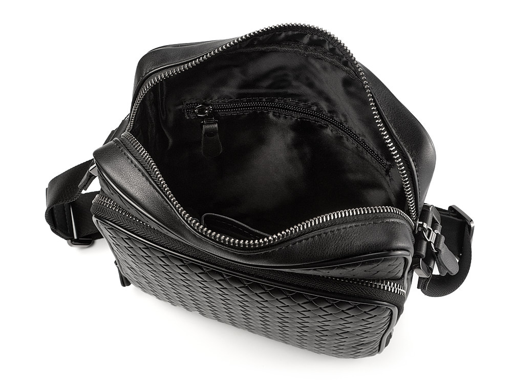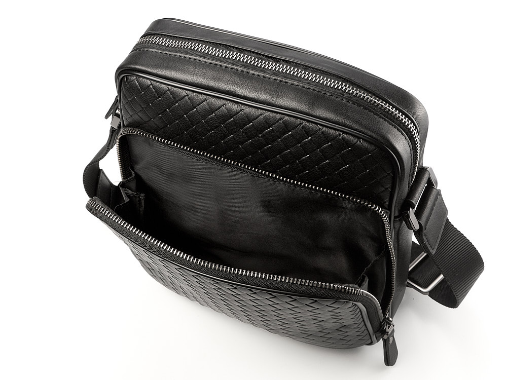Стильная мужская сумка из плетеной кожи LeGRAND collection 3534-4L Black чёрная
