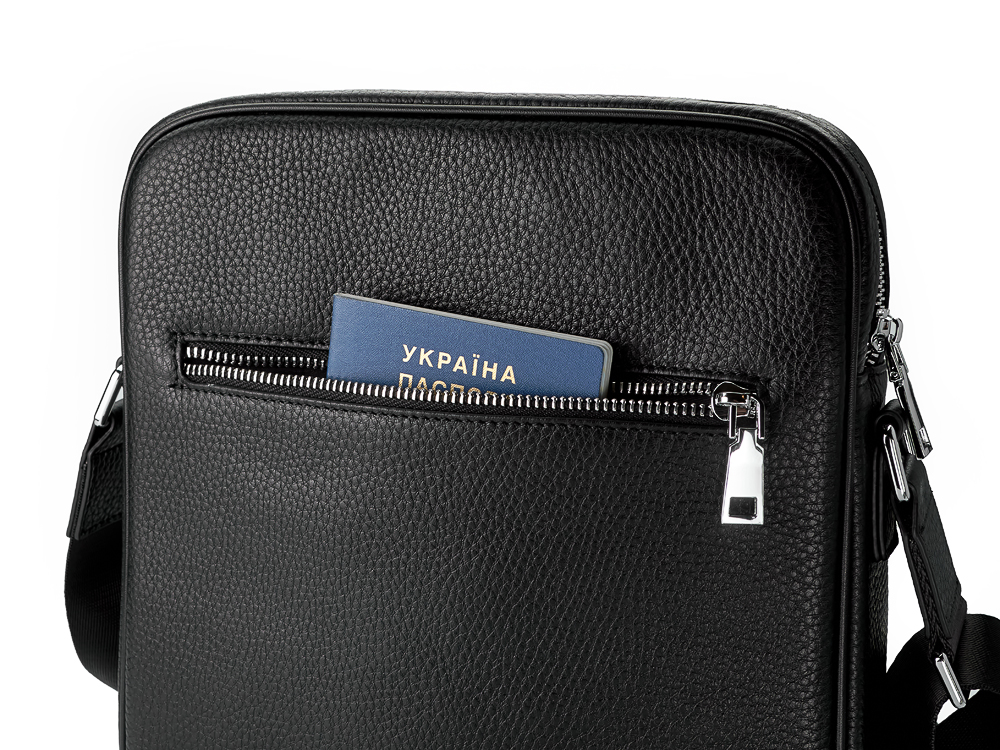 Ця сумка створена для чоловіків, які цінують комфорт, якість і сучасний вигляд. Виготовлена з м’якої зернистої натуральної шкіри вищого сорту, вона дуже приємна на дотик, стійка до зношування та має елегантну фактуру. Універсальний дизайн підходить як до ділового костюма, так і до повсякденного одягу.