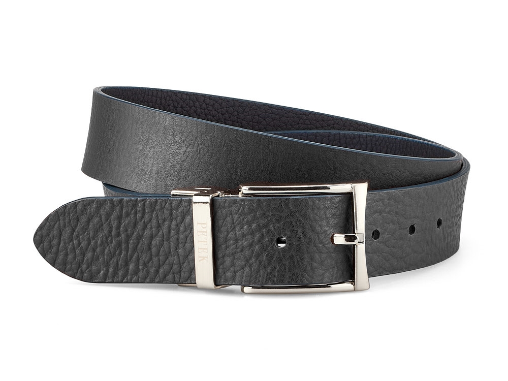 Двосторонній чоловічий ремінь з натуральної шкіри Petek 1855 4025509004 (255-01/255-08) чорний/синій