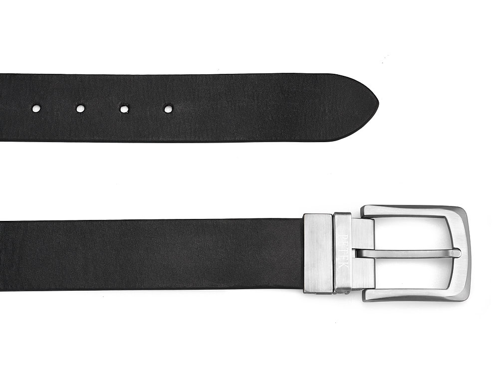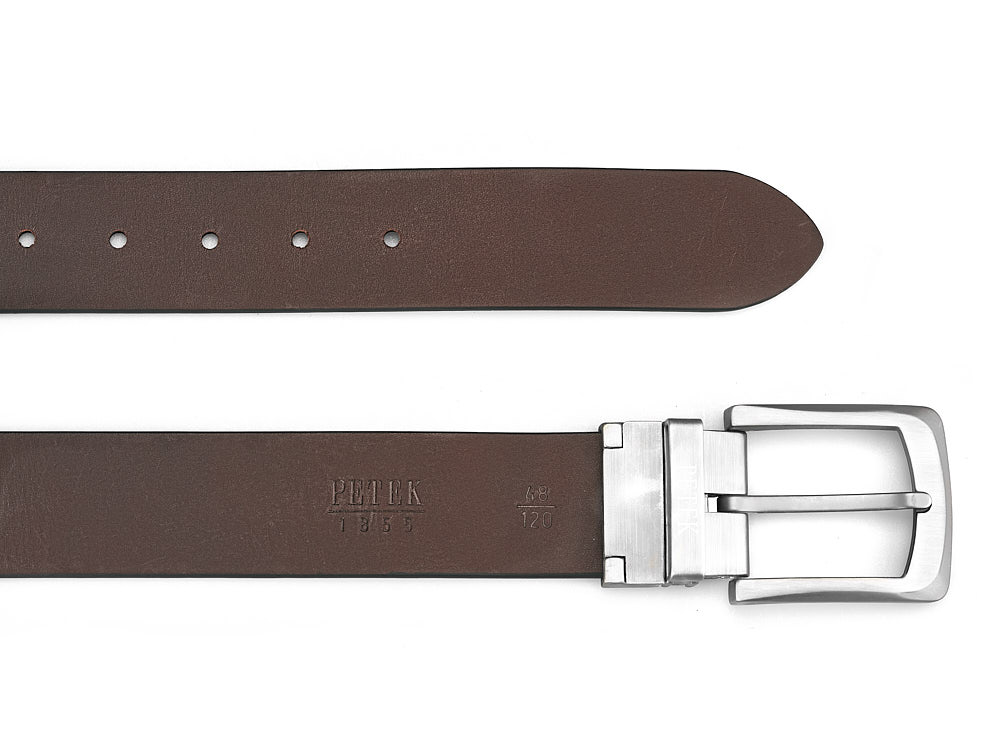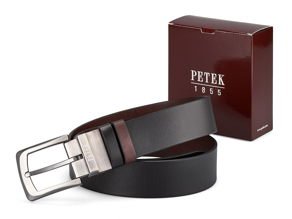 Двосторонній чоловічий ремінь з натуральної шкіри Petek 1855 4025709004 (000-01/000-02) чорний/коричневий