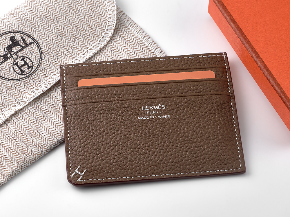 Картхолдер з натуральної шкіри Hermes 219 Grey мокко
