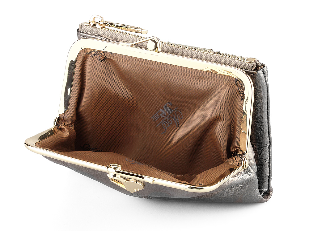 Усередині гаманця розташоване два відділення під купюри, велика кількість осередків під картки, і окрема монетниця з металевим фермуаром.