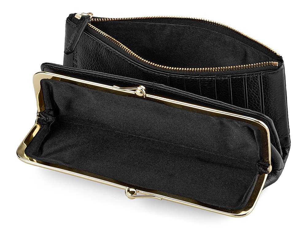 Його три основні відділення ідеально підходять для зберігання купюр, тоді як спеціальні кишені для кредитних карток і оригінальна монетниця на "поцілуйчику" забезпечують зручний доступ до найнеобхіднішого.