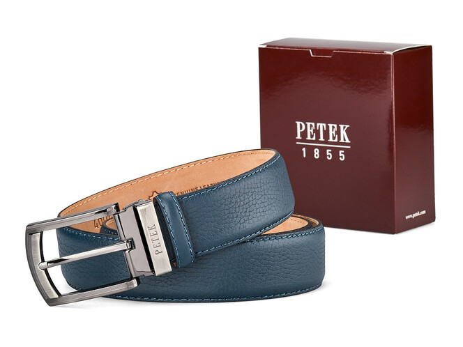 Шкіряний чоловічий ремінь Petek 1855 4004611 (046-88) синій