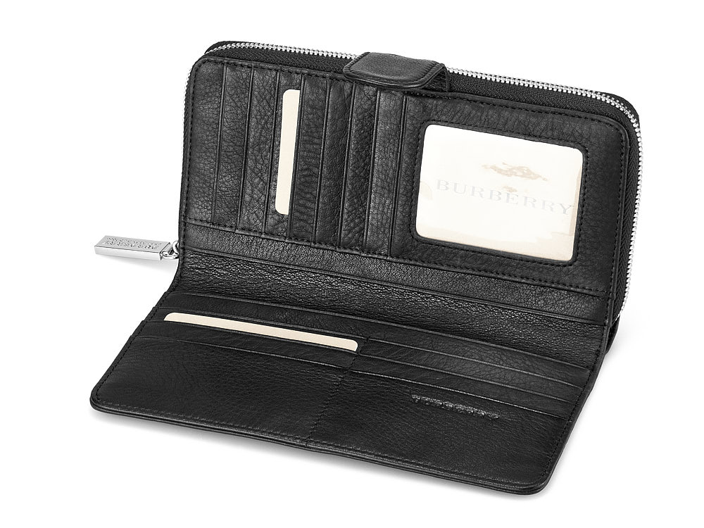 Шкіряний жіночий гаманець на блискавці Burberry 5633 A Black чорний