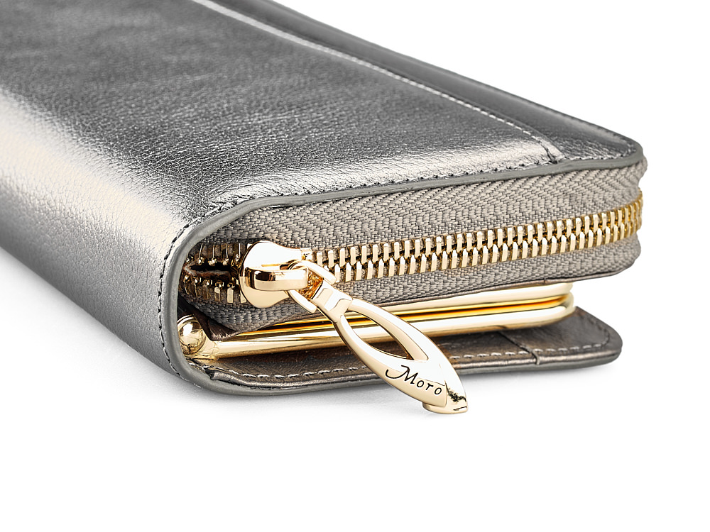 Стильний жіночий гаманець з натуральної шкіри Moro&Jenny 182-147 N Silver сріблястий