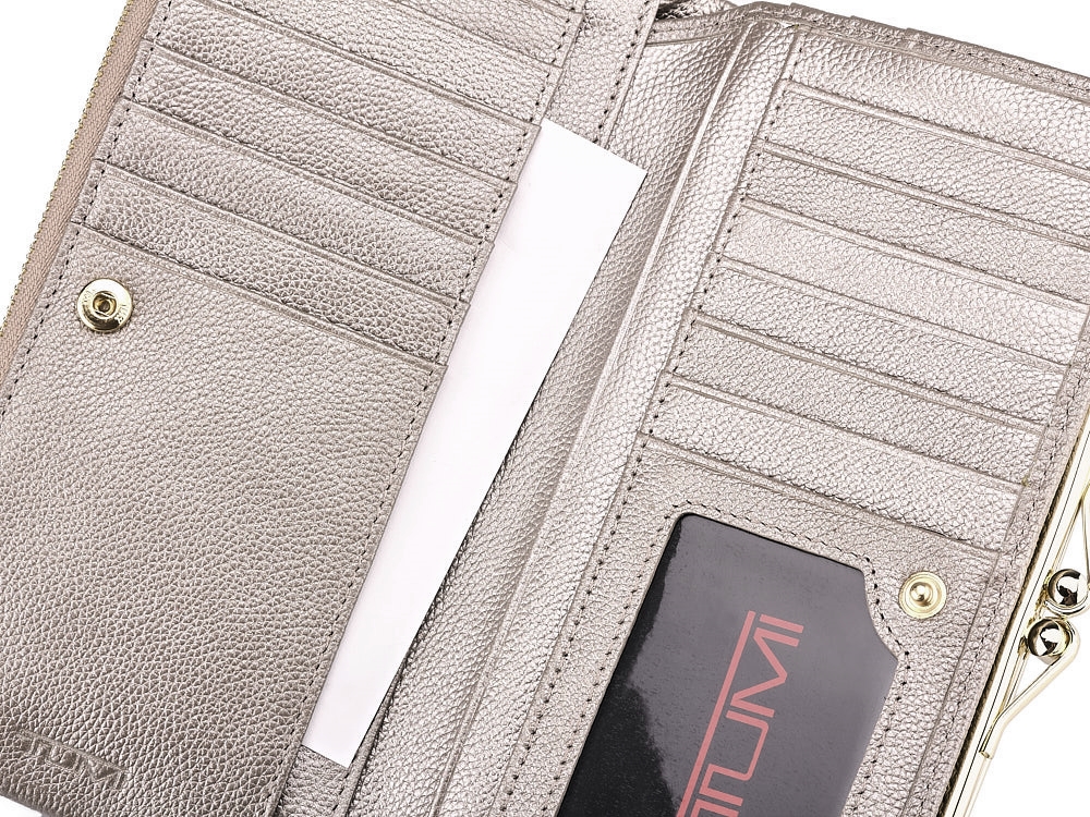 Жіночий гаманець з натуральної шкіри TUMI 1056 T Silver сріблястий