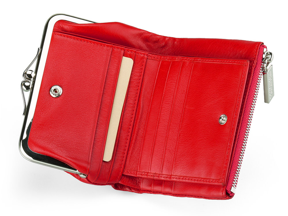 Компактні розміри (12x10x2 см) дозволяють легко розмістити гаманець у сумочці. Всередині передбачено два відділення для купюр, багато кишеньок для кредитних карток, а також металева монетниця, яка глибоко відкривається для зручності користування. Магнітна застібка забезпечує надійне закриття.