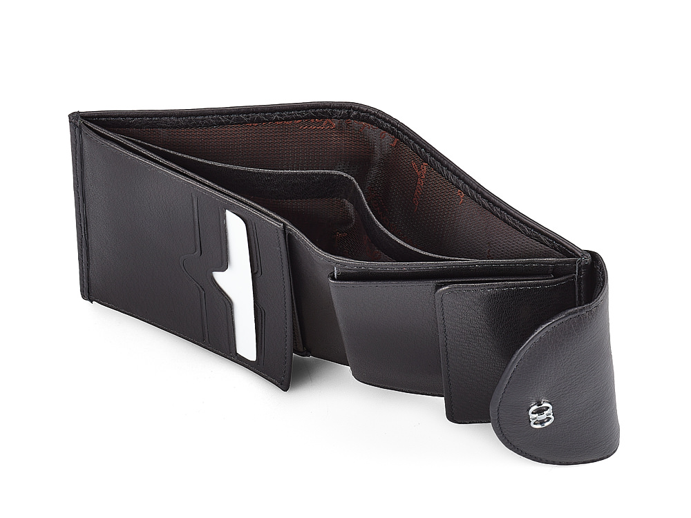 В производстве использованы натуральная мягкая кожа высшего сорта и надежная фурнитура, поэтому этот кошелек будет служить годами.