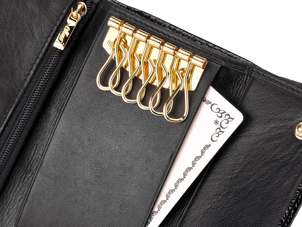 Женский кошелек - ключница из натуральной кожи Moro&Jenny 59048 A Black чёрная
